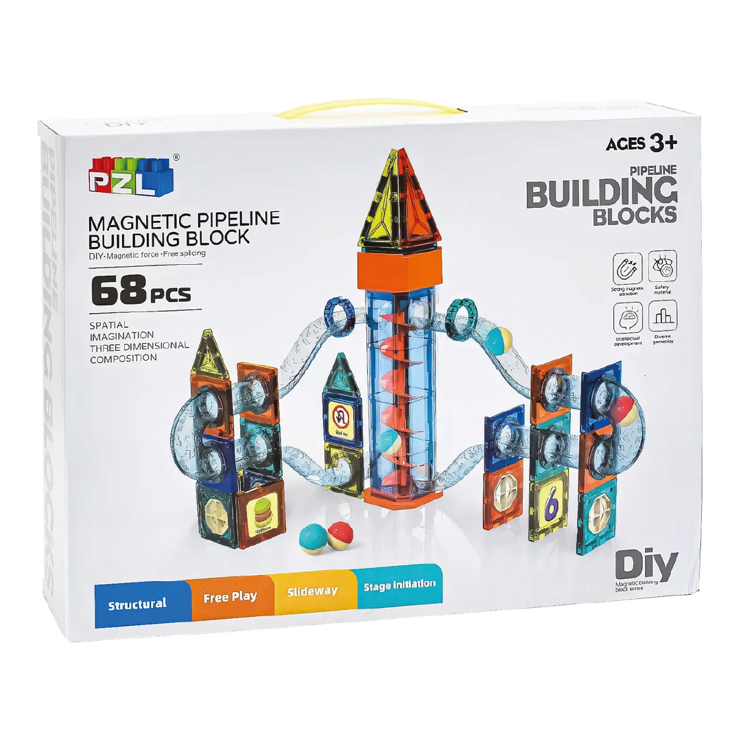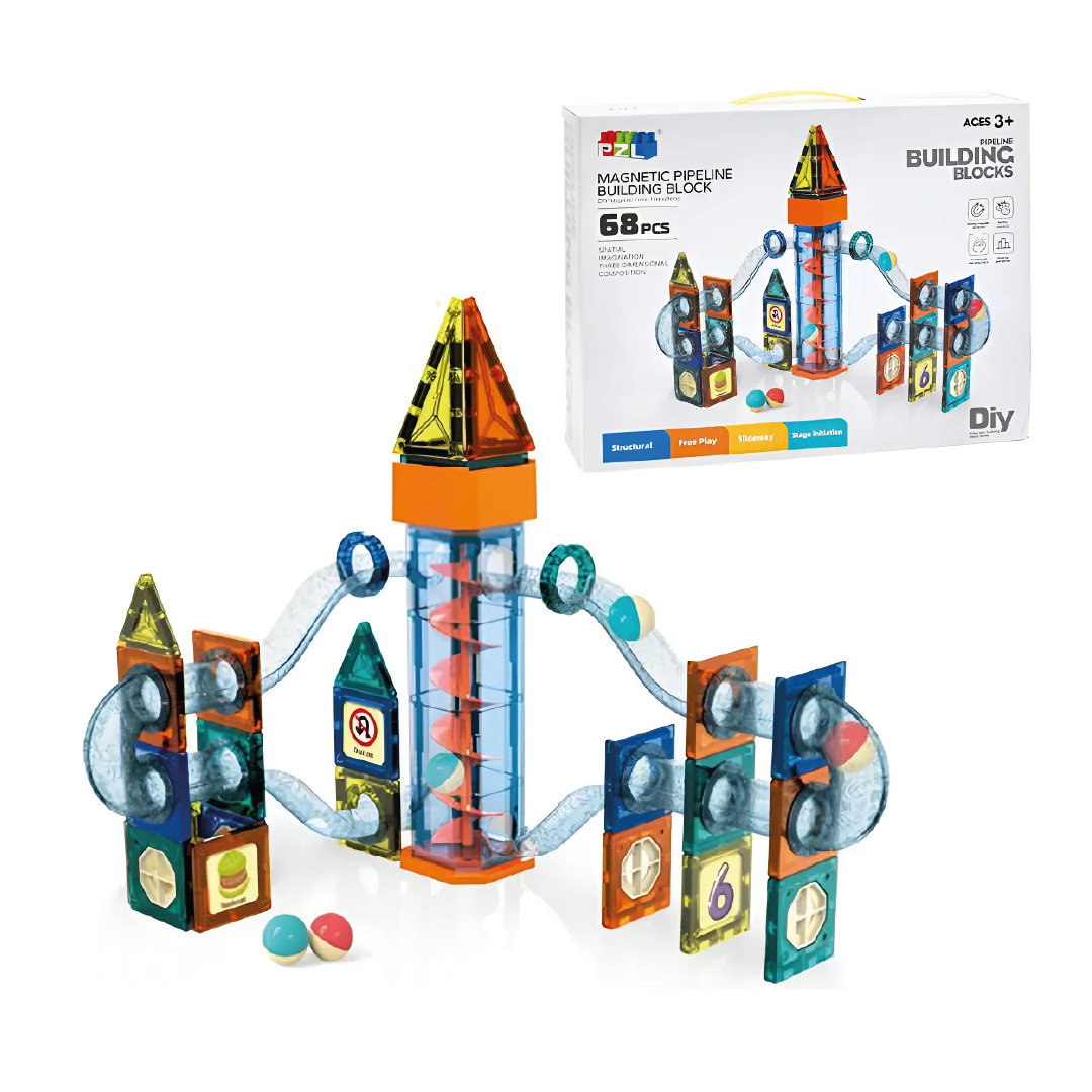 🧲 Bloques Magnéticos con Pistas de Bolas – 68 Piezas