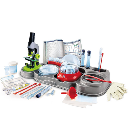 Prepárate para explorar el mundo microscópico como un verdadero científico. Este laboratorio completo tiene TODO lo que necesitas para crear experimentos, usar un microscopio real y entender cómo funciona la ciencia de verdad… ¡desde casa!