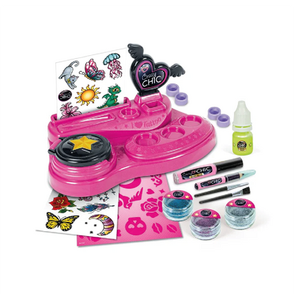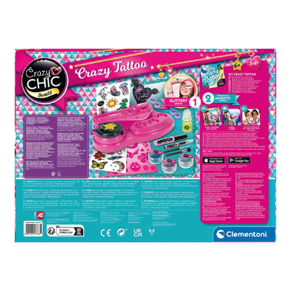 Crazy Chic – Crazy Tattoo es el laboratorio de tatuajes más cool para niñas creativas que quieren llevar su estilo al siguiente nivel. Un kit completo con tatuajes glitter, que brillan en la oscuridad y… ¡hasta se animan con realidad aumentada!