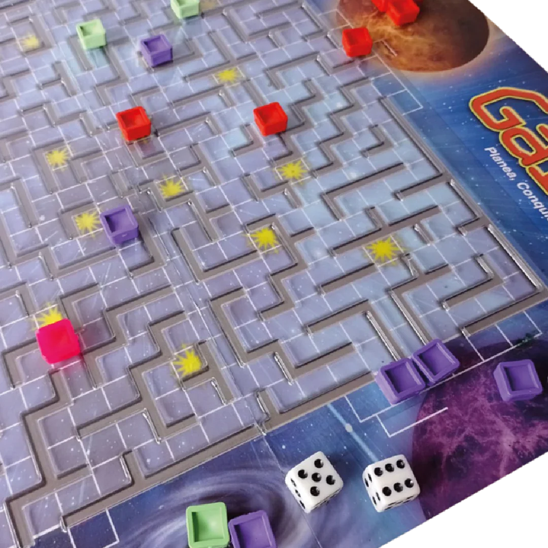 ¿Creías que ya habías visto todo en juegos de mesa? Galaxy lleva el clásico parqués a otro nivel: un laberinto galáctico lleno de planetas, estrellas seguras y batallas interestelares. Aquí no hay direcciones fijas ni reglas anticuadas: puedes comerte a tus oponentes desde cualquier lugar y en cualquier sentido… si te atreves.