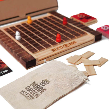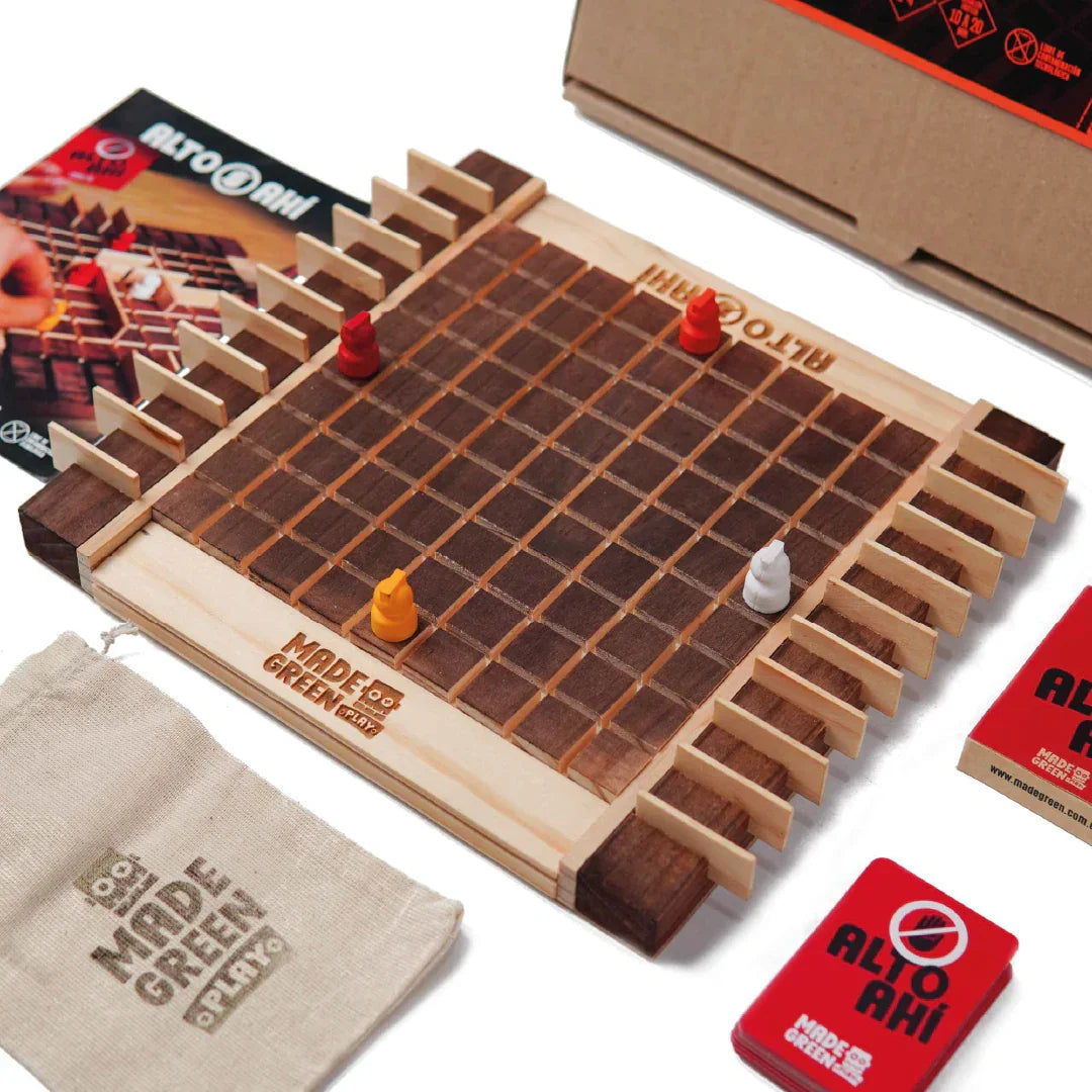 Prepárate para una mezcla explosiva de estrategia, suerte y caos. En Alto Ahí, tu misión es simple: llevar tu peón al otro lado del tablero… mientras bloqueas, saboteas y desconciertas a tus oponentes con muros y cartas cargadas de sorpresas.