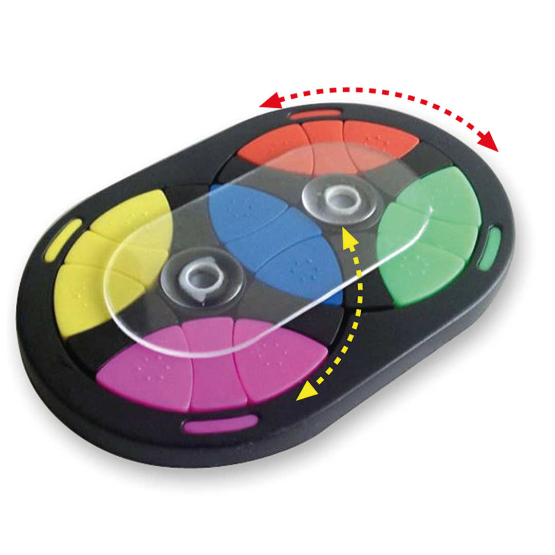 A la vez, puedes girar los círculos de colores para cambiar la posición de cada ficha.