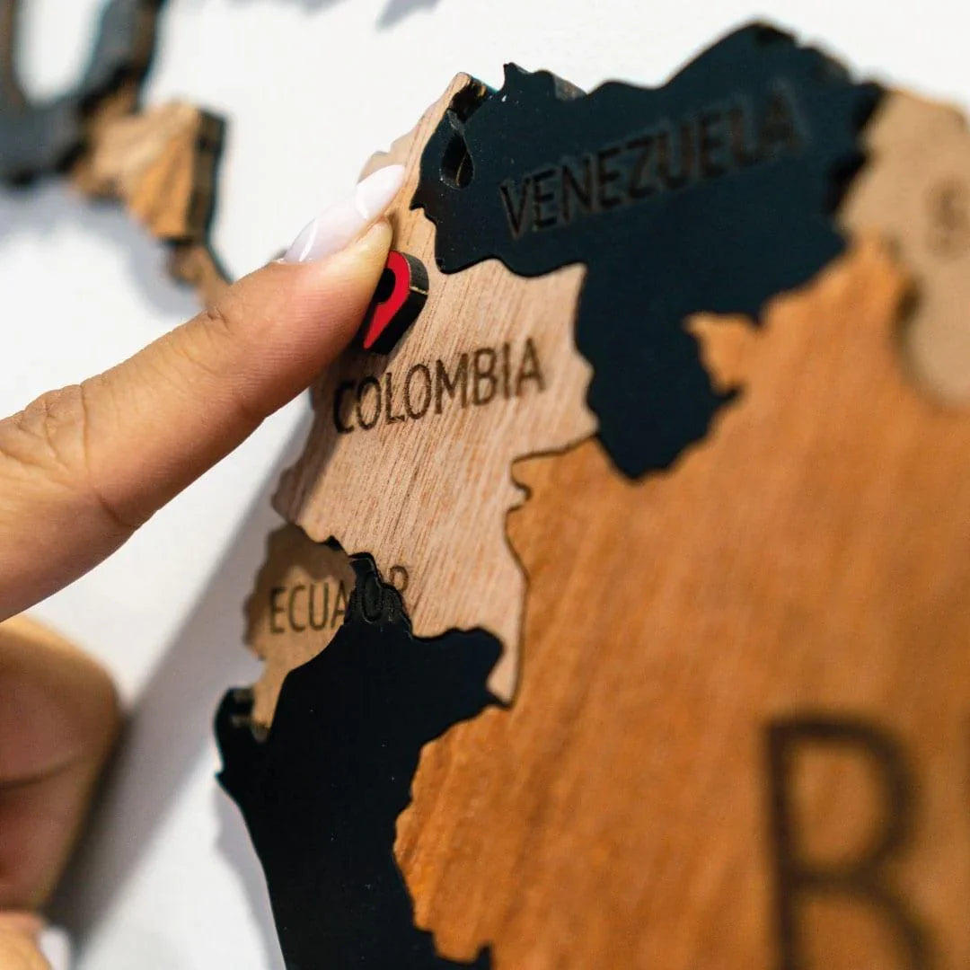 - Incluye pines de madera para marcar los países visitados