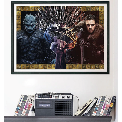 🖼️ Imagen icónica – Presenta una ilustración impactante con símbolos clave de Game of Thrones y personajes que capturan la esencia de la saga.