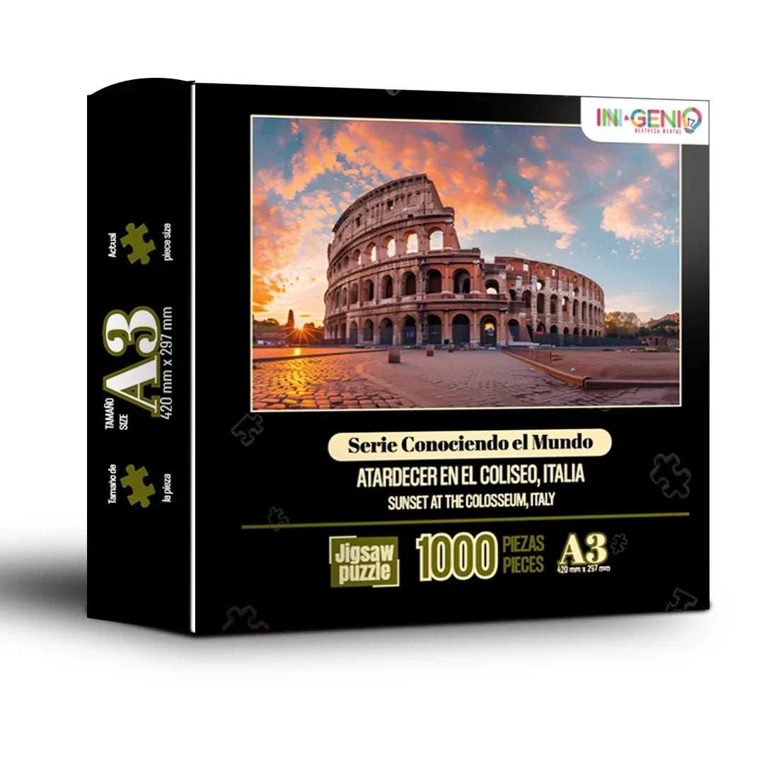 Rompecabezas 1000 Piezas mini A3 - Atardecer en el Coliseo, Italia (M100-205)